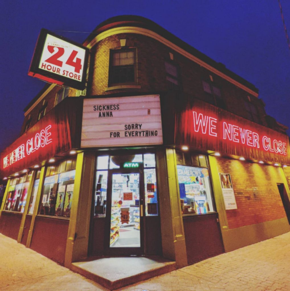 “Mad and sad on purpose” is a mission statement to live and die by, perfect to represent the debut EP from newly-formed Buffalo trio Sickness Anna. Sorry For Everything (SFE) listens like a journal entry, six songs of heartfelt guitar rock, no doubt influenced by the 90s alternative greats like Smashing Pumpkins, and whatever wave of ephemeral emo/post-hardcore we’re currently on. A somewhat-subtle nod to frontman Nick Sessanna’s name (try switching the ‘N’ and the ‘S,’ folks), the band’s moniker is both self-referential and fitting, a pit-in-your-stomach vibe that feels morose. Joined by drummer Jake Sessanna and Everything in Waves frontman Anthony DelPlato (who mixed and mastered SFE and is also co-writer for his/Sessanna’s electronic project Jaugust), the trio slams through six heartbreakers, bringing new art to life while also burning ceremonial bridges tied to other eras. Also, we have to wonder, how did they get the iconic Buffalo landmark Cameron’s 24 Hour Store to change their sign? Sorry for Everything is our Album of the Week.