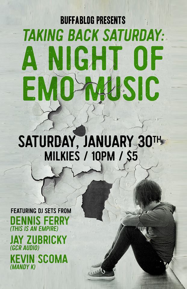 Fun starts at about 10pm with DJ sets from local reformed emos Kevin Scoma (Mandy K), Jay Zubricky (producer over at GCR), and Dennis Ferry (of This is an Empire). $5 will get you past the door guy and a straight shot down memory lane. Tell all your friends.